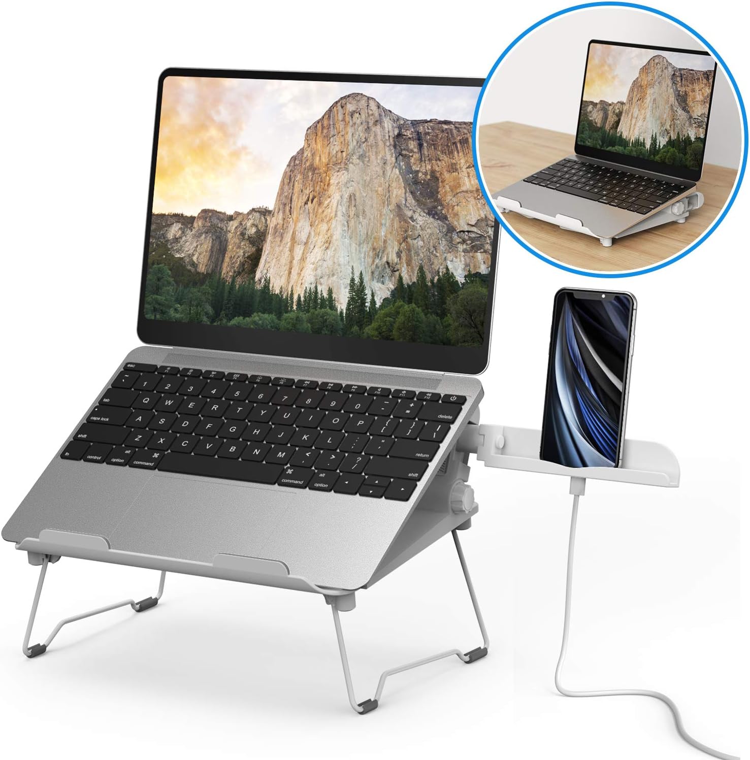 Free Amazon Promo Code 2020 for 2 in 1 Laptop Notebook Stand with Phone Stand Elekin Adjustable Portable MacBook Stand Foldable Notebook Holder Ergonomic Laptop Riser for MacBook, Air, Pro, Surface Laptop, Ipad, Books to 17”,White