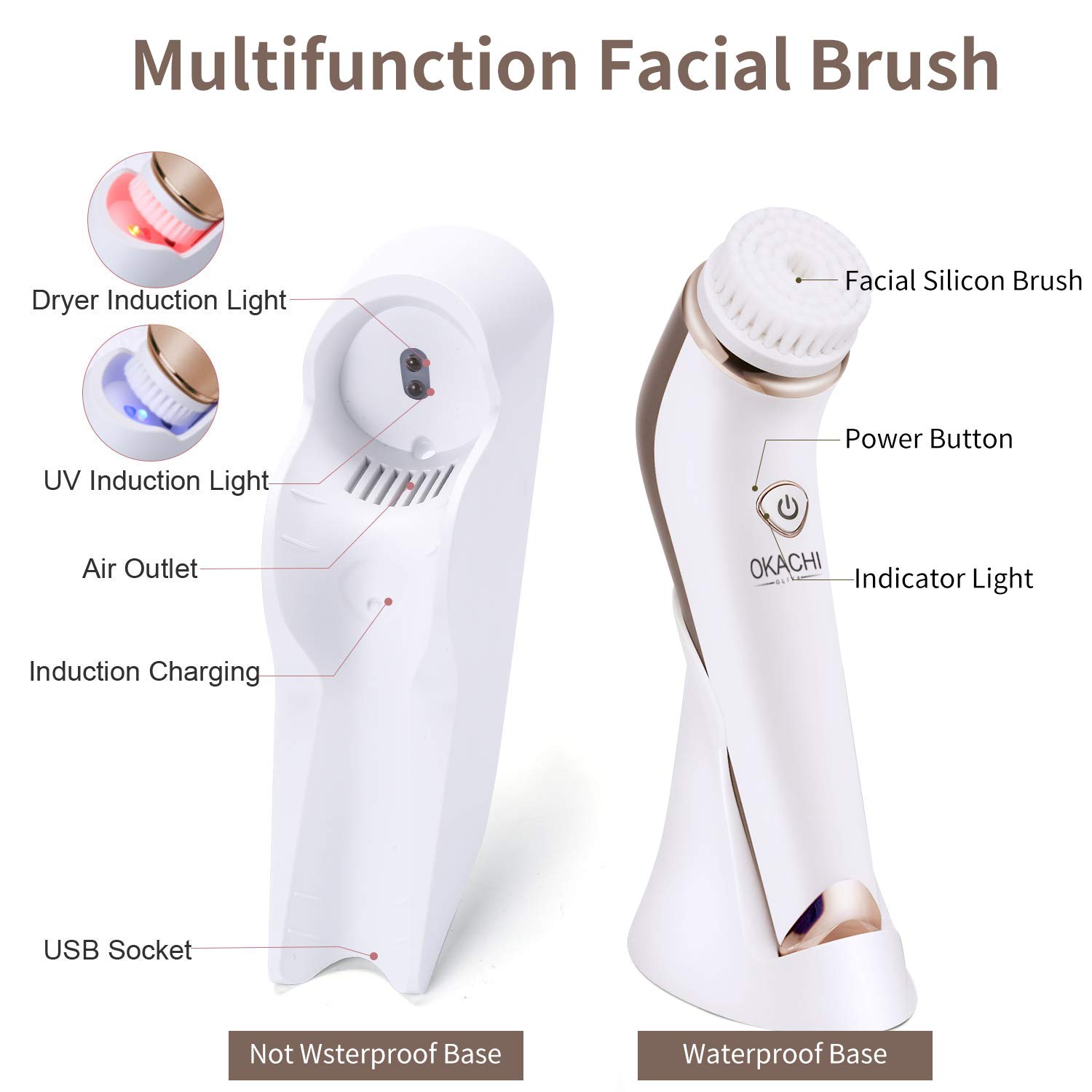 Facial Cleansing Brush Rechargeable Eletric Face Wash Brush, Waterproof Face Brush with UV Deep Clean & Professional Air Dryer System, 4 Cleaning Modes for Gentle Exfoliation