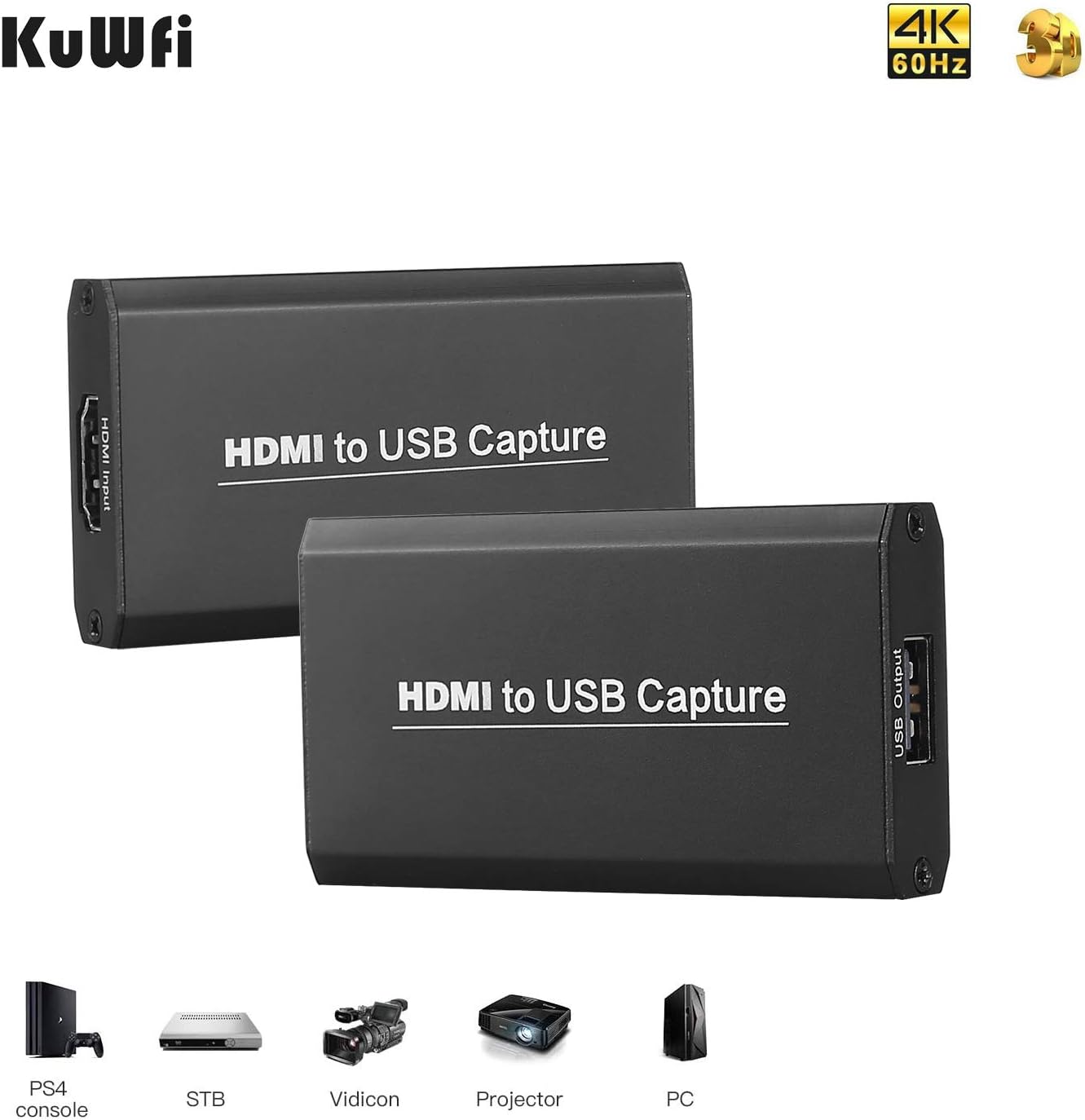 【KuWFi HDMI Video Capture】4K HDMI to USB2.0 Video Capture Dongle, it is easy to carry, have a superior performance,superior compatibility, simple installation and many other features, It can capture one HDMI 1080p/30Hz input and output signal