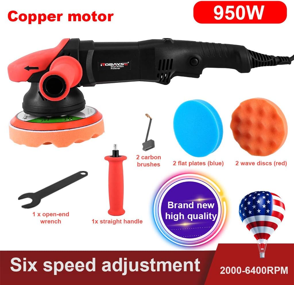 Variable Speed Polishing Machine, 6 In Powerful Buffer Polisher 950W 2000-6400Rpm, Dual-Action, Anti-Static, D-Type Handle, For Car Polishing, Furniture/Wood Polishing, Paint/Rust Removal