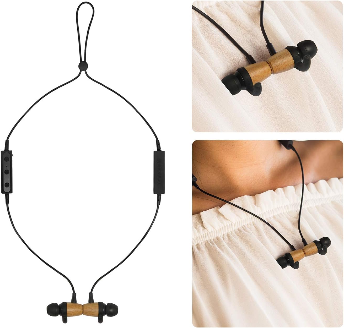 Bamboo Wood Magnetic Bluetooth Wireless Earbuds by Reveal Shop - Headphones w/Secure Inner Ear Angle-Fit Tips, Sport Earphones w/Mic & Volume Control (Bamboo)