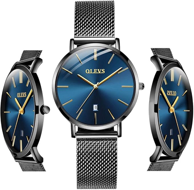 【Watch Type】 thin blue watches for women/analog quartz watch,watchcase:33mm diameter and 6.5mm thickness,precision quartz core,date display;±20 seconds per month accuracy,scratch resistant. We hope it acts as a daily reminder to never stop, never settle, and stay in relentless pursuit of your goals.At OLEVS, luxury is a value. It’s an attention to detail. It's a promise to never take shortcuts and a commitment to always providing our customers with the best.