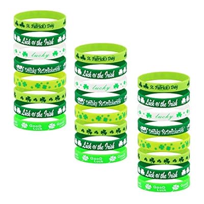 Honsny 24 Pieces StPatricks Day Bracelets Shamrock Irish Rubber Wristbands Bracelet St Patricks Day Party Favors Green Rubber Silicone St Patricks Accessories Jewelry